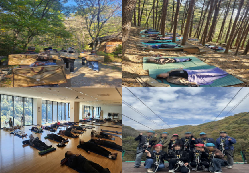 이번 힐링캠프에는 횡성관내 사회복지시설·기관·단체 종사자 20여 명이 참여했으며, 보호체계사업 소개와 종사자 간담회를 시작으로 숲 산책 및 명상, 싱잉볼 뮤직테라피, 가리산레포츠파크 플라잉짚 체험 등 다양한 프로그램이 진행됐습니다.