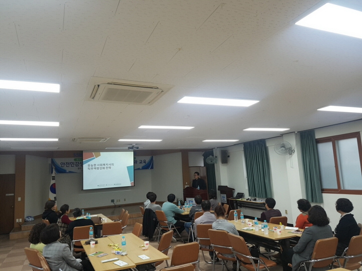 일시 : 2019년 10월 23일 (수) 14:00 장소 : 횡성군사회복지협의회 2층 강당 횡성군 사회복지협의회(회장 이석원)는 횡성군 사회복지종사자의 보호체계 구축을 위한 소진예방프로그램 『cheer up』 사회복지종사자 안전민감성훈련 프로그램 및 역량강화교육을 10월 23일 협의회 2층강당에서 횡성 관내 사회복지시설, 기관, 단체종사자분들을 모시고 프로그램을 진행하였습니다. 마인드온 심리연구소 배지석강사님과 송호대학교 이재용 교수님께서 교육 및 프로그램을 진행해주셨고, 종사자분들의 적극적인 참여로 성황리에 프로그램을 마쳤습니다. 종사자분들의 직무외상을 소진하고 해결할 수 있는 유익한 시간이었길 희망하며, 횡성군 사회복지를 위해 힘써주시는 종사자분들에게 다시 한번 감사드립니다. |