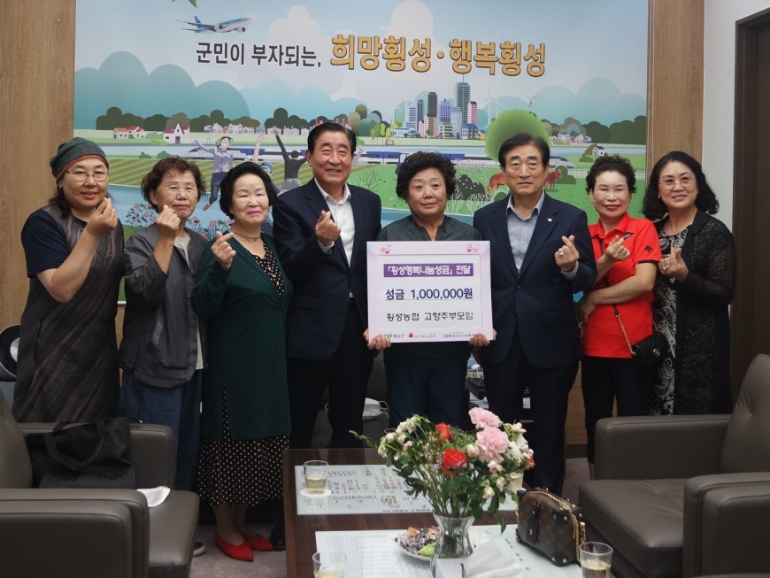 【횡성농협 고향주부모임】에서 『횡성행복나눔성금』으로 성금을 기탁해주셨습니다. 소중한 후원 진심으로 감사합니다.