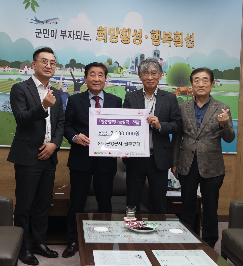 【한국공항공사 원주공항】에서 『횡성행복나눔성금』으로 성금을 기탁해주셨습니다. 소중한 후원 진심으로 감사합니다.