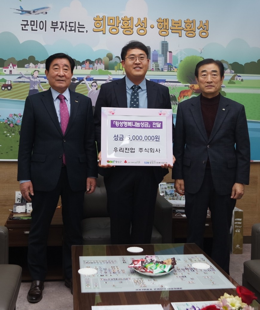 【우리전업 주식회사】에서 『횡성행복나눔성금』으로 성금을 기탁해주셨습니다. 소중한 후원 진심으로 감사합니다.