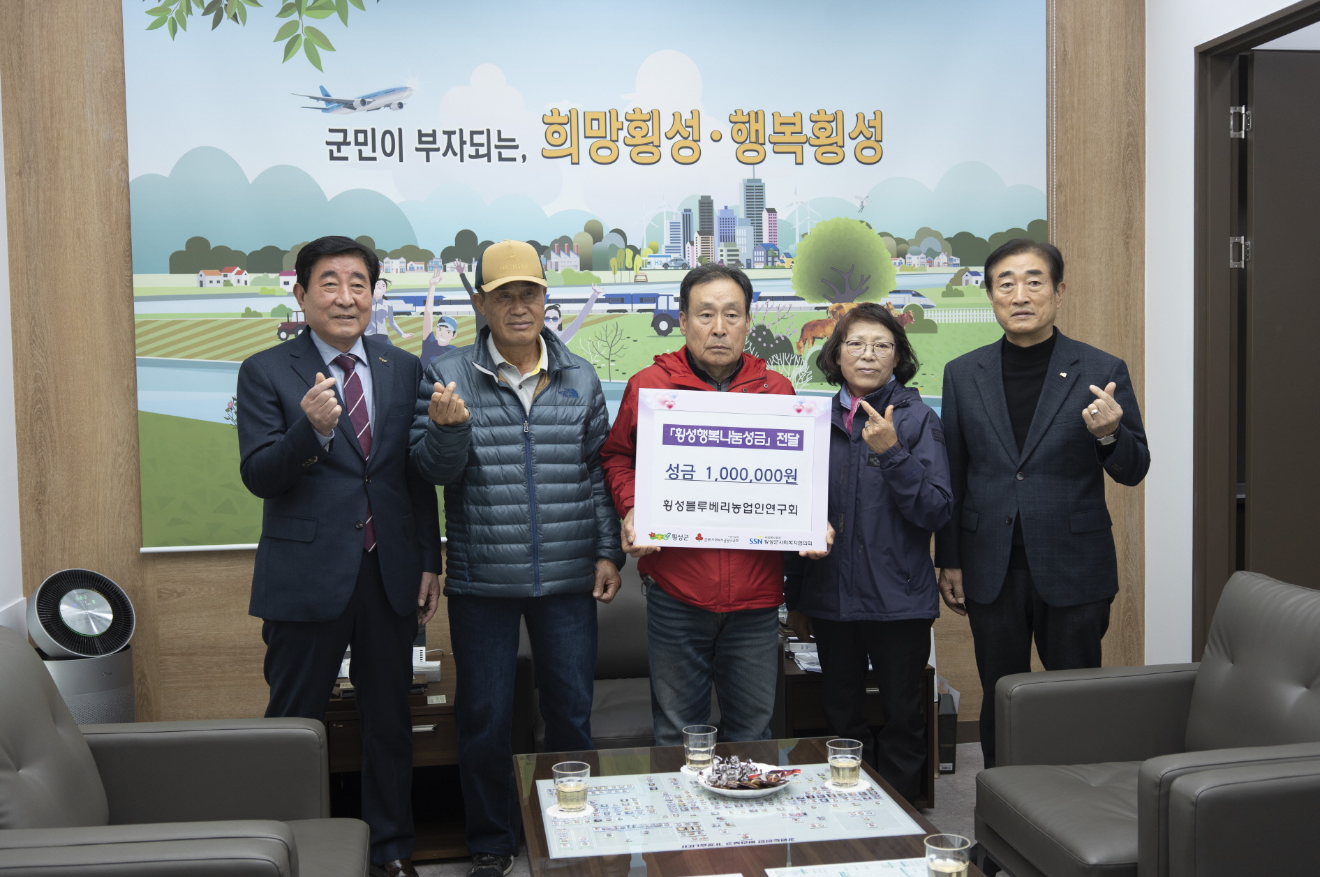 【횡성블루베리 농업인연구회】에서 『횡성행복나눔성금』으로 성금을 기탁해주셨습니다. 소중한 후원 진심으로 감사합니다.