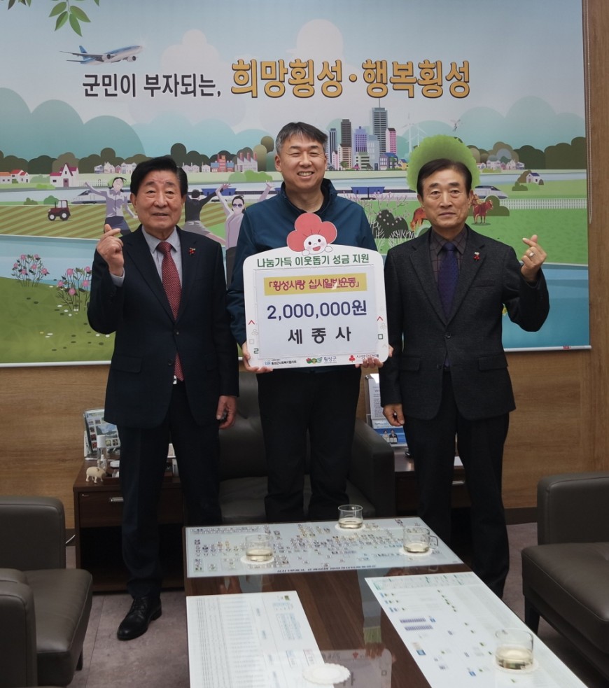 【세종사】에서 『횡성사랑 십시일반운동』으로 성금을 기탁해주셨습니다. 소중한 후원 진심으로 감사합니다.