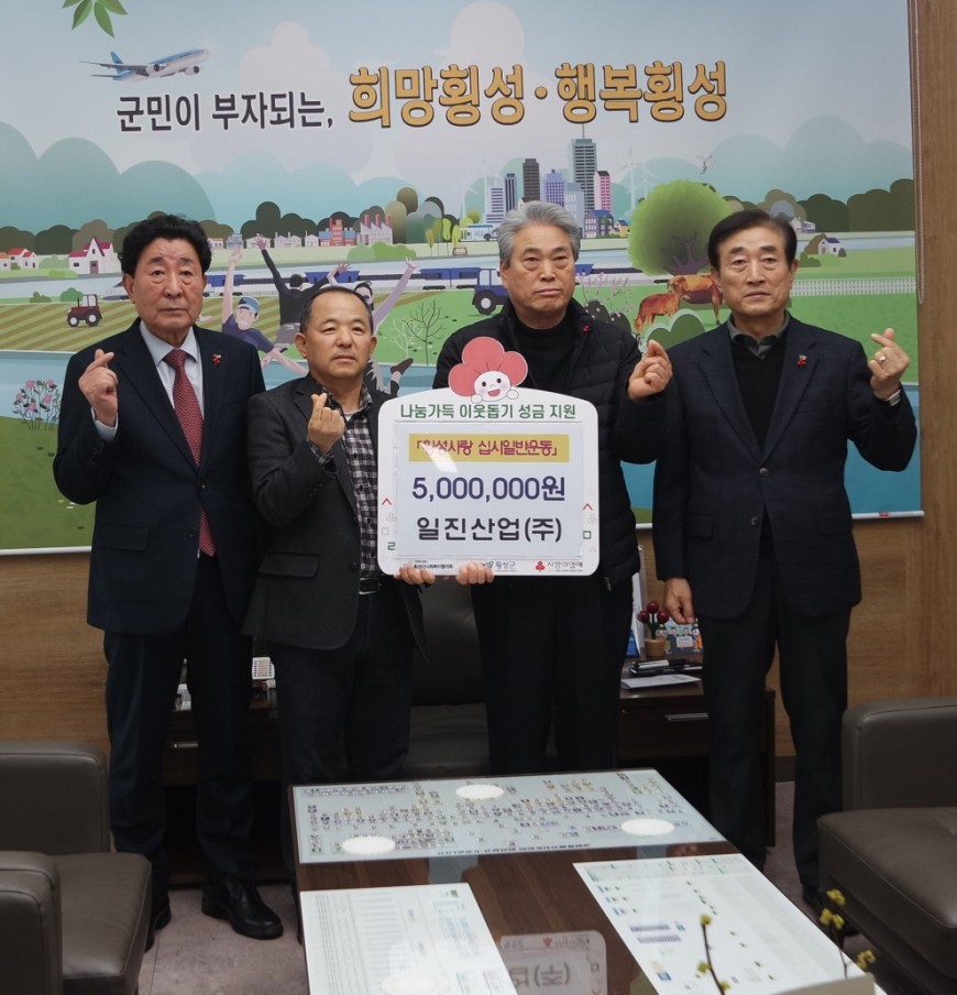 【일진산업(주)】에서 『횡성사랑 십시일반운동』으로 성금을 기탁해주셨습니다. 소중한 후원 진심으로 감사합니다.